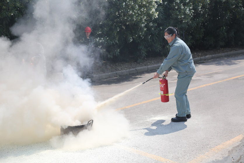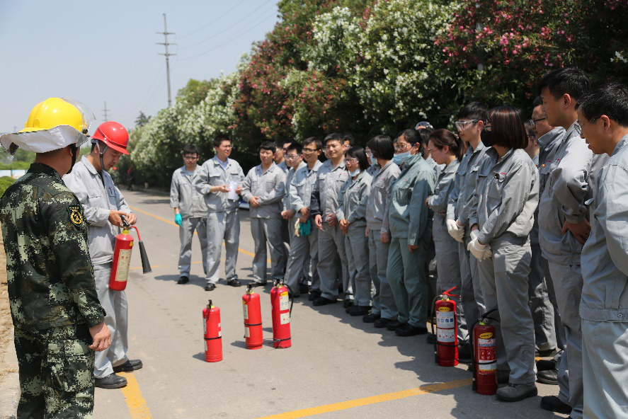 5月22日下午,南通江山農藥化工股份有限公司直屬團支部在公司消防隊舉辦了消防技能比武活動,此次活動包括手持滅火器滅火、消防水帶使用、消防服及空呼器的穿戴。來自公司研究院、業務發展部、營銷中心、綜合管理部等6個部門,共計28名青年員工參加了活動。活動開展之前,28名參賽選手通過抽簽方式分成兩組。接著公司消防隊長介紹了滅火器的種類、滅火器的使用方法以及比賽規則。