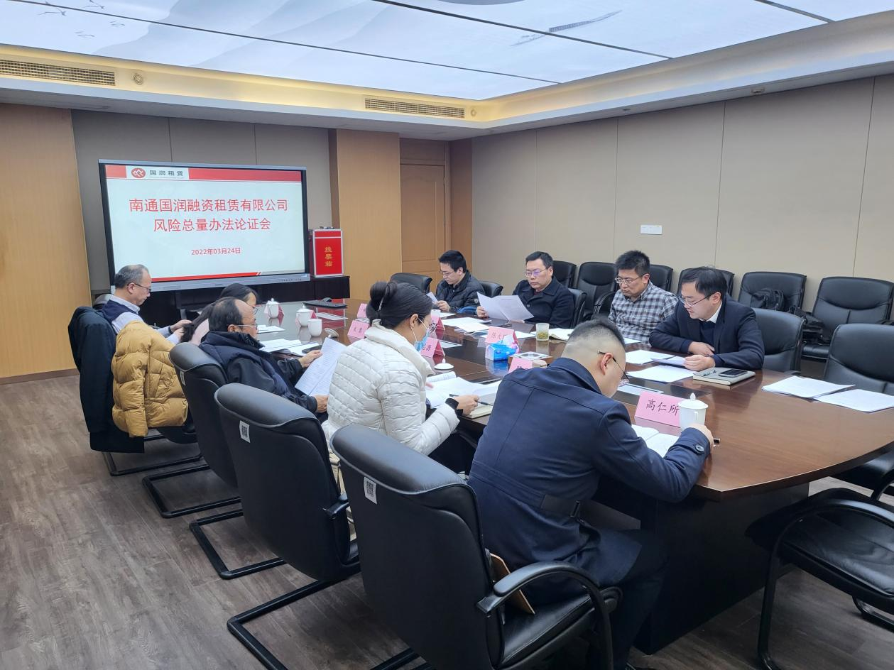 為推動公司高質(zhì)量發(fā)展,加快轉(zhuǎn)型升級、控制經(jīng)營風(fēng)險,國潤租賃邀請市金融局、國資委和銀行、法律等方面專家,共同對《國潤租賃風(fēng)險總量管理辦法》進行研究論證。