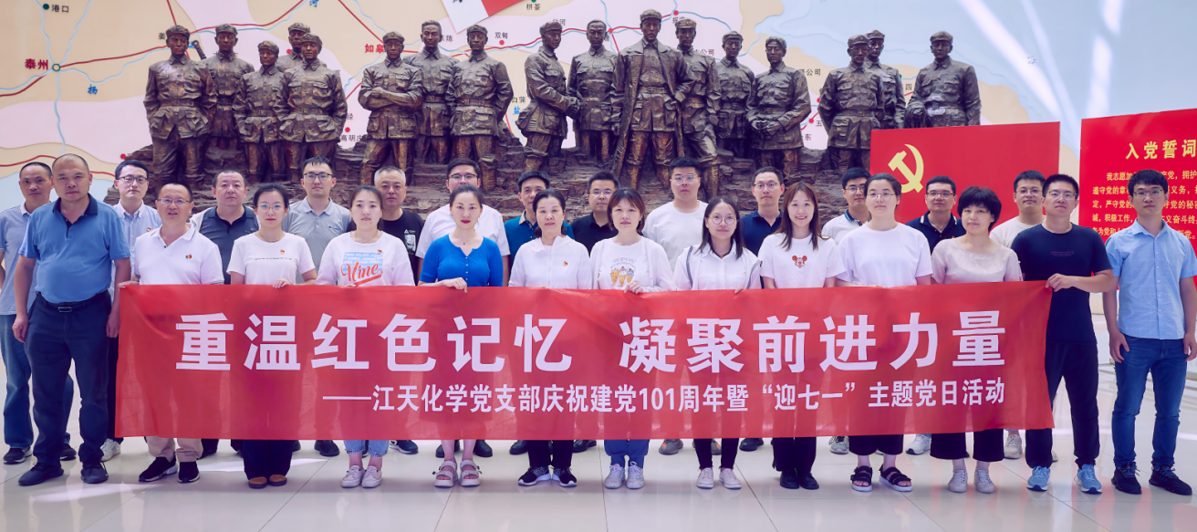 為慶祝中國(guó)共產(chǎn)黨成立101周年,根據(jù)公司黨支部的統(tǒng)一安排,6月26日,江天化學(xué)黨支部黨員、預(yù)備黨員、發(fā)展對(duì)象、入黨積極分子以及入黨申請(qǐng)人赴海安蘇中七戰(zhàn)七捷紀(jì)念館和如皋紅十四軍紀(jì)念館開(kāi)展以“重溫紅色記憶 凝聚前進(jìn)力量”為主題的“迎七一”主題黨日活動(dòng)。